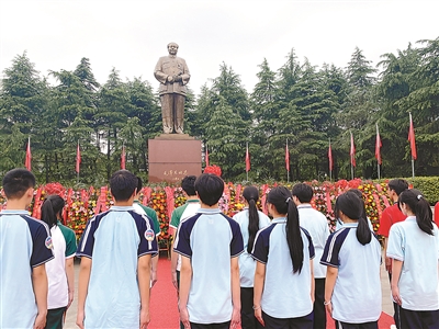 鮮花,寄托著研學師生對一代偉人的敬仰。