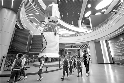 4月24日是中國航天日,不少學生游客來到哈爾濱工業(yè)大學航天館參觀,接受科普教育。