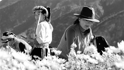 “要致富,先修路。”在桂花的帶領(lǐng)下,懸崖峭壁上一條氣勢恢宏的盤山公路連通了甲居一村的致富路。她還幫助、指導(dǎo)村民修建藏寨,藏式民居成了村民現(xiàn)代化的家和游客驛站,并對村落中的古老建筑進行加固與修繕,讓百年藏寨在歲月中無聲傳承。同時,她帶領(lǐng)村民抓產(chǎn)業(yè),全村老少硬是在山包上摳出了兩口蓄水池,重新整治4公里的高山水渠,為生態(tài)農(nóng)業(yè)發(fā)展奠定基礎(chǔ)。此外,閑忙兩不誤,農(nóng)業(yè)生產(chǎn)和發(fā)展旅游互補,并以花田務(wù)工、技術(shù)輸出等多元化方式示范帶動村民種植金絲皇菊,形成了初具規(guī)模的“菊花+”全產(chǎn)業(yè)鏈條。