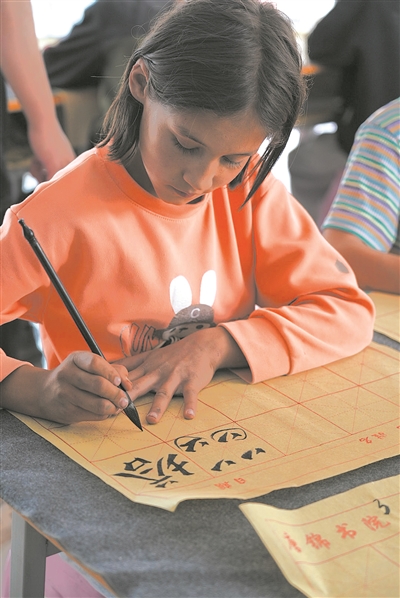 每到周末和寒暑假,在五十一團(tuán)二小就讀的11歲女孩蘇海巴,都會和爸爸媽媽一起來到這里,蘇海巴在書院學(xué)書法、唱歌和跳舞,爸爸媽媽在家庭工坊工作。