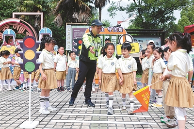 5月21日,在浙江省湖州市吳興區(qū)龍泉街道白魚潭社區(qū)的“有禮市集”上,交警通過場景模擬的方式為湖州市第三幼兒園的孩子們普及交通安全知識(shí)。從今年初開始,當(dāng)?shù)囟ㄆ谂e辦“有禮市集”,以此提升市民的文明意識(shí),推進(jìn)基層文明建設(shè)。