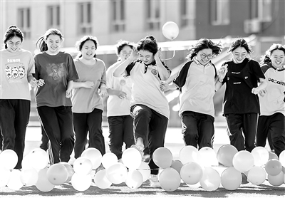 近日,內(nèi)蒙古自治區(qū)呼和浩特市第十二中學(xué)組織舉辦“舞動(dòng)激情 放飛夢(mèng)想”高三年級(jí)趣味運(yùn)動(dòng)嘉年華活動(dòng),讓高三學(xué)生在復(fù)習(xí)備考之余,強(qiáng)身健體,愉悅身心,輕松迎考。圖為該校高三學(xué)生在參加踩氣球趣味游戲。