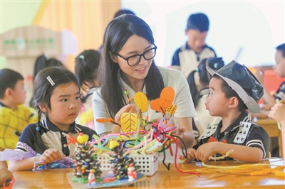 6月3日,在浙江省湖州市德清縣鐘管鎮(zhèn)中心幼兒園,小朋友利用廢舊物品制作手工藝品。當(dāng)日,鐘管鎮(zhèn)垃圾分類辦聯(lián)合鎮(zhèn)中心幼兒園開展“低碳環(huán)保 從小做起”主題活動(dòng),通過廢舊物品手工制作等,引導(dǎo)孩子們養(yǎng)成保護(hù)環(huán)境、垃圾分類的好習(xí)慣。王樹成 攝
