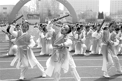 開發(fā)利用當(dāng)?shù)氐拿褡迕耖g美育資源,是旅順口區(qū)農(nóng)村中小學(xué)打造“山海味道”的又一大招。早在2004年,大連市第六十二中學(xué)就把民間舞蹈“霸王鞭”作為學(xué)校美育的傳承項(xiàng)目。在每天的大課間活動(dòng)中,全校學(xué)生人手一“鞭”,跳自編的鞭扇秧歌《在希望的田野上》,很快就成為遼寧省特色大課間活動(dòng)。此外,水師營中心小學(xué)積極傳承中華優(yōu)秀傳統(tǒng)文化,先后被教育部確定為“藝術(shù)教育基地”和“中華優(yōu)秀文化藝術(shù)傳承學(xué)?!薄2粌H如此,2014年該校牽動(dòng)轄區(qū)4所村小,以聯(lián)合集群的方式打造美育特色,成為大連市首所“集群式”美育特色學(xué)校。