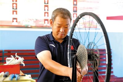 李江珍是甘泉中學教師,也是學校山地自行車隊教練。面對零基礎的隊員,他耐心在山地、公路上手把手地教。他白天抓訓練,晚上檢查和維修車輛,有些配件不匹配,就自己動手用銼刀打磨、修補。有一次一下子壞了3輛車子,他一直熬到半夜12點多才全部修好。
