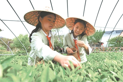 7月10日,山東省青島市市北區(qū)海逸學校學生在茶園學習采茶。暑假期間,海逸學校的學生們走進茶文化體驗中心茶園,感受傳統(tǒng)茶文化的獨特魅力,樂享假期生活。王海濱 攝