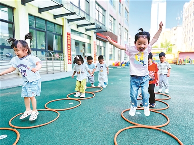 為切實減輕家長負擔,解決暑期“看護難”問題,近日,江蘇省鹽城市亭湖區(qū)所有公辦園都開設(shè)了愛心暑托班。各幼兒園依據(jù)幼兒年齡特點提供多元化課程和豐富多彩的活動,讓孩子們度過一個愉快又有意義的假期。圖為鹽城市解放路實驗學校第一附屬幼兒園暑托班孩子們的活動場景。 李偉 圖 倪同嶺 文