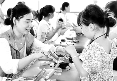 日前,在安徽省淮北市烈山區(qū)華家湖社區(qū)流動兒童服務(wù)站,20多名流動兒童參加了“關(guān)愛潤童心 守護伴成長”暑期流動兒童機器人編程課堂活動。孩子們通過學(xué)習(xí)人工智能機器人技術(shù)原理知識和模型搭建,激發(fā)起對科學(xué)技術(shù)的興趣,豐富暑期生活。周方玲 攝