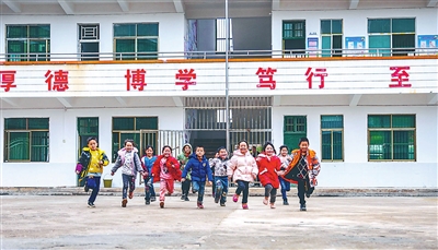 ③湖南省永州市新田縣駱銘孫小學(xué)學(xué)生放學(xué)沖出教室。