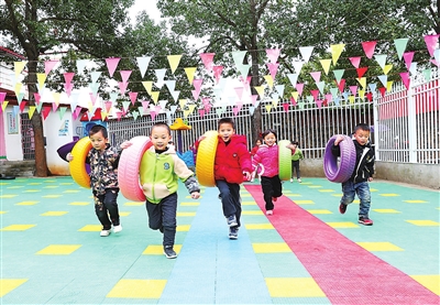 ②湖南省永州市新田縣的鄉(xiāng)村幼兒園里,孩子們在高興地做游戲。