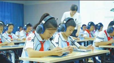 ③??谑袨I海第九小學(xué)美麗沙分校學(xué)生在利用國家智慧教育平臺(tái)上課。