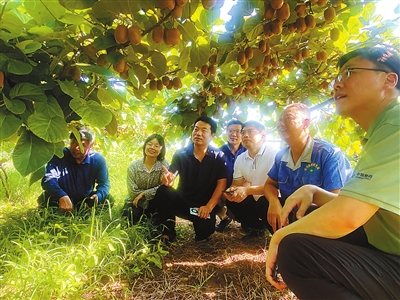 ②河南農(nóng)業(yè)大學(xué)助農(nóng)服務(wù)團(tuán)到汝陽縣獼猴桃種植基地回訪服務(wù)“頭雁”學(xué)員。