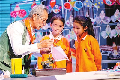 ④滇派風(fēng)箏傳承人給學(xué)生講授風(fēng)箏制作技藝。