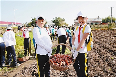③哈爾濱市繼紅小學(xué)學(xué)生走進(jìn)繼紅致知實(shí)驗(yàn)田采摘紅薯。