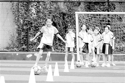 福建省福州市鼓樓第五中心小學(xué)學(xué)生進(jìn)行足球控球訓(xùn)練。 通訊員 謝貴明 攝