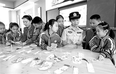 9月24日,在安徽省安慶市宜秀區(qū)月形小學(xué),社區(qū)民警、美術(shù)教師和學(xué)生們一起制作綠書簽,并通過觀看視頻和互動(dòng),讓學(xué)生們了解制作綠書簽的意義,引導(dǎo)未成年人綠色閱讀,營造護(hù)航未成年人健康成長的濃厚氛圍。