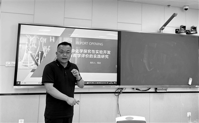 圖:程波在化學(xué)教學(xué)研討會上分享經(jīng)驗。 資料圖片