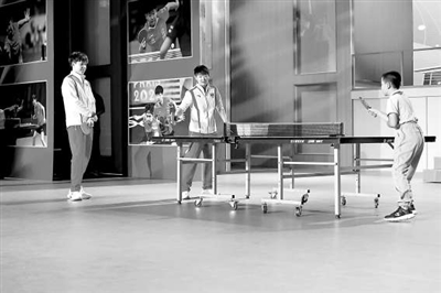③奧運(yùn)冠軍孫穎莎跟學(xué)生一起打乒乓球。 尹碩 攝