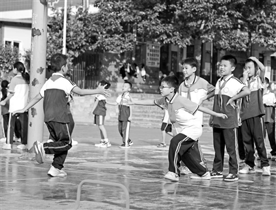 10月11日,貴州省黔東南苗族侗族自治州從江縣城關(guān)第三小學(xué)學(xué)生在進(jìn)行接力跑訓(xùn)練。