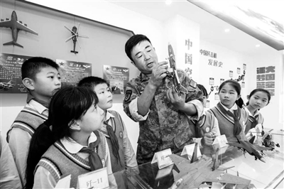 10月18日,在安徽省合肥市廬陽區(qū)海棠街道國防知識(shí)科普館,廬陽區(qū)實(shí)驗(yàn)小學(xué)學(xué)生在學(xué)習(xí)國防知識(shí)。當(dāng)日,海棠街道武裝部聯(lián)合轄區(qū)小學(xué)開展“青春如火,國防有我”主題教育活動(dòng),通過介紹武器裝備模型、開展國防知識(shí)講座等形式,增強(qiáng)青少年國防意識(shí)和愛國熱情。