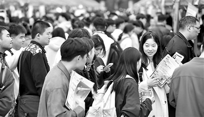 10月19日,在河南高校畢業(yè)生就業(yè)市場(chǎng)豫西分市場(chǎng)暨河南科技大學(xué)2025屆畢業(yè)生秋季雙選會(huì)上,大學(xué)生求職者在咨詢相關(guān)崗位信息。