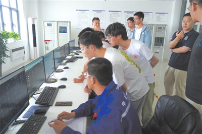 上海交通大學(xué)學(xué)生在新疆哈密中船泰巽新能源有限公司調(diào)研電廠運(yùn)維情況。 (學(xué)校供圖)