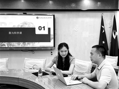 深圳市光明區(qū)教科院設計教研員和學校名師團隊協(xié)同培養(yǎng)的模式,圖為東周小學(集團)校長何維泉(右)在指導新入職的科學教師陳方結。 資料圖片