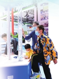 第84屆教育裝備展示會現(xiàn)場學(xué)生體驗智能化實驗設(shè)備。