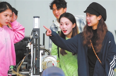 ▲安徽藝術(shù)學(xué)院傳媒學(xué)院教師張雷雷(右一)對(duì)參加大學(xué)生講思政課的學(xué)生進(jìn)行專業(yè)輔導(dǎo)。