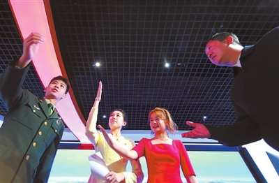 ▲在安徽藝術(shù)學(xué)院VR黨建活動(dòng)室,學(xué)生進(jìn)行“彝海結(jié)盟”課程編排,準(zhǔn)備大學(xué)生講思政課省賽。
