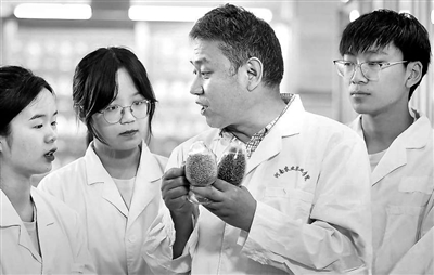 河南農(nóng)業(yè)職業(yè)學(xué)院現(xiàn)代種業(yè)學(xué)院師生在實(shí)驗(yàn)室進(jìn)行種質(zhì)資源形態(tài)鑒定實(shí)訓(xùn)。(資料圖片)