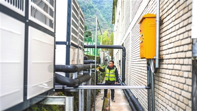 左工作人員在檢查亮巖小學的供熱設施(11月21日攝)。