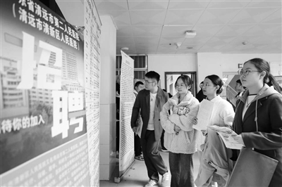 11月23日,湖南省衡陽(yáng)市,南華大學(xué)2025屆畢業(yè)生在觀看用人單位崗位需求信息。當(dāng)日,南華大學(xué)2025屆畢業(yè)生冬季綜合雙選會(huì)舉行,220家用人單位攜帶1025個(gè)用人崗位來(lái)校招聘,崗位需求人數(shù)達(dá)10923人。曹正平 攝