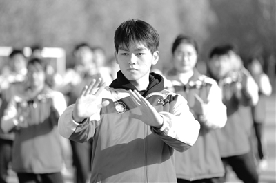 11月27日,河南省焦作市溫縣一中高二學(xué)生在體育課上練習(xí)太極拳。溫縣是太極拳發(fā)源地,該縣自2001年起將太極拳引進(jìn)校園,通過編寫太極拳教材、開設(shè)太極拳課程、大課間練習(xí)太極拳、定期舉辦師生太極拳比賽等活動,推廣普及太極拳,傳承太極文化。目前,該縣中小學(xué)有5萬余名學(xué)生練習(xí)太極拳,習(xí)拳健身成了當(dāng)?shù)匦@里的亮麗風(fēng)景線。