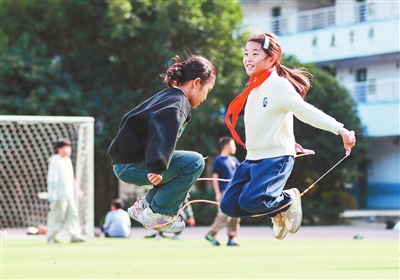近日,貴州省從江縣剛邊壯族鄉(xiāng)中心小學(xué)學(xué)生在體育課上跳繩。近年來,該校不斷豐富體育課程,讓學(xué)生在形式多樣的體育活動中鍛煉身體、增強(qiáng)體質(zhì)。