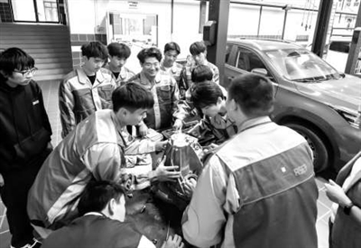 宜賓職業(yè)技術(shù)學(xué)院汽車與軌道交通學(xué)院學(xué)生在企業(yè)車間實(shí)訓(xùn)。資料圖片