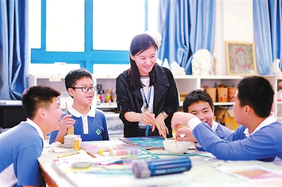 廣東省深圳市教師戴秋敏在給學生上美術(shù)模塊課程。龍崗區(qū)教育局供圖