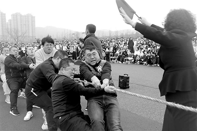 遼寧省莊河市高級中學(xué)教師在進行拔河比賽。 學(xué)校供圖