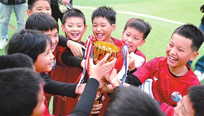 12月2日,湖北省武昌實驗中學(xué)沙湖學(xué)校學(xué)生在四年級組足球聯(lián)賽奪冠后慶祝。近年來,該校以社團活動為平臺,積極開展特色教育,豐富校園文化生活。學(xué)生可自主選擇參加足球、排球、籃球、乒乓球、擊劍等多種社團課程,強健體魄,快樂成長。