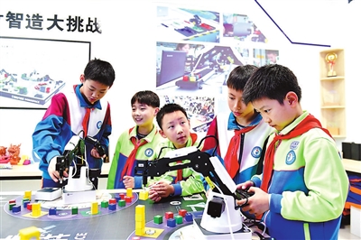12月6日,在山東省日照市金海岸小學,學生在進行航天英雄挑戰(zhàn)賽訓練。近年來,山東省日照市東港區(qū)積極推進中小學人工智能教育,實行“普及+提高”的人工智能課程體系,以聯(lián)盟結(jié)對、成立共同體等形式,推動優(yōu)秀課程資源共建共享,目前,已建成中小學人工智能實驗室37所。