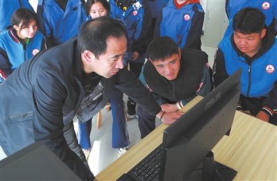 張家口市職業(yè)技術(shù)教育中心正高級(jí)講師陳振華為和碩縣高級(jí)中學(xué)動(dòng)漫游戲與制作專業(yè)學(xué)生授課。