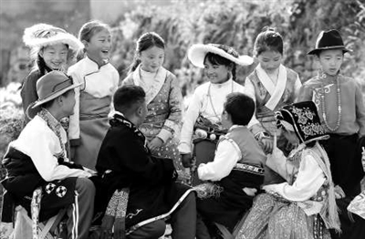 勒烏二小戶外藝術(shù)實(shí)踐活動(dòng)在院壩開展,參加活動(dòng)的學(xué)生愉快交流。