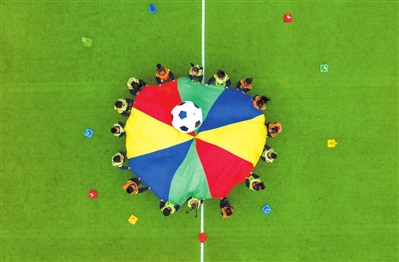 12月9日,浙江省湖州市長興縣煤山鎮(zhèn)中心幼兒園的孩子們參與“趣味顛球”足球運動。當日,該園開展足球嘉年華活動,孩子們參與帶球越障、點球大戰(zhàn)、快樂破門等趣味運動,學(xué)習(xí)足球知識,強健體魄。譚云俸 攝