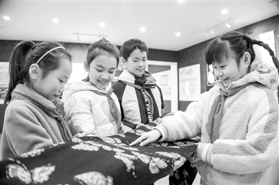 12月12日,江蘇省南通市理治小學的學生們在二甲鎮(zhèn)藍印花布藝術中心參觀。學生們在藍印花布技藝傳承人的指導下,了解和體驗藍印花布的制版、刮漿、染色、刮灰等工藝流程,感受傳統文化的魅力。