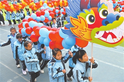 近日,廣西南寧市民族大道東段小學(xué)學(xué)生在體育節(jié)開幕式上享受舞龍的快樂。在體育節(jié)開幕式活動(dòng)上,孩子們以舞龍、武術(shù)、舞蹈等方式,盡情享受運(yùn)動(dòng)的快樂。