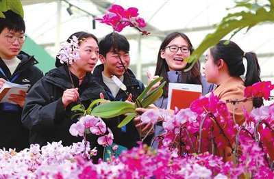 在成都市溫江區(qū)南美農業(yè)園區(qū),博士服務站師生了解當地特色花卉產業(yè)。