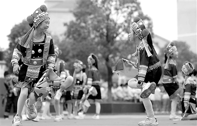 近日,江西省吉安市泰和縣第三實(shí)驗(yàn)小學(xué)學(xué)生身著民族服飾,表演民族舞蹈。近年來,泰和縣第三實(shí)驗(yàn)小學(xué)積極推進(jìn)素質(zhì)教育,開展民族舞蹈進(jìn)校園大課間活動(dòng),豐富學(xué)生的校園文化生活。
