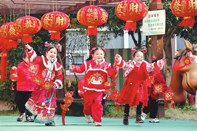 12月26日,在浙江省湖州市德清縣中心幼兒園,孩子們參加傳統(tǒng)民俗活動。元旦將至,各地中小學校和幼兒園組織多彩活動,歡樂喜慶迎接新年。