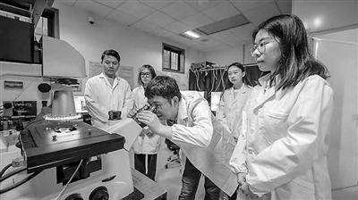 圖①:病毒學(xué)國家重點(diǎn)實(shí)驗(yàn)室、武漢大學(xué)生命科學(xué)學(xué)院教授嚴(yán)歡(左二)指導(dǎo)學(xué)生做實(shí)驗(yàn)。 肖珊 供圖