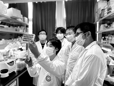 圖①:病毒學(xué)國家重點實驗室、武漢大學(xué)生命科學(xué)學(xué)院教授嚴(yán)歡(左二)指導(dǎo)學(xué)生做實驗。 肖珊 供圖